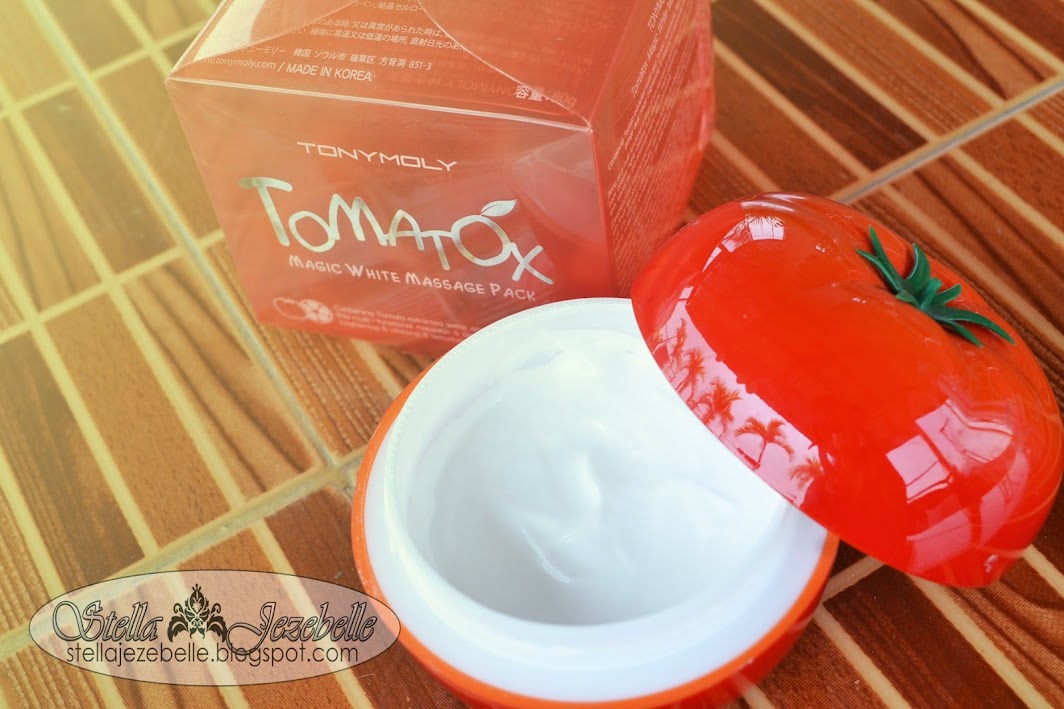 Tony Moly Tomatox Magic White Massage Pack comes in a red tomato shaped jar as shown in the photo. It is quite large and contains 80g. Packaging says it contains tomato extracts and ingredients. It also says this multi-functional massage and pack brings dual magic brightening effect, vitalizing and detoxifying effects on the skin.